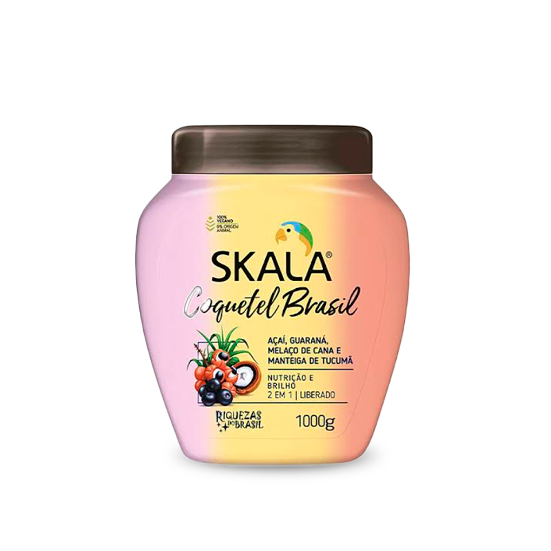 El cóctel de Brasil, la riqueza de Brasil Açaí, la melaza de caña, la guaraná y la mantequilla de Tucumã, proporcionan nutrición y brillo para el cabello seco y sin vida.