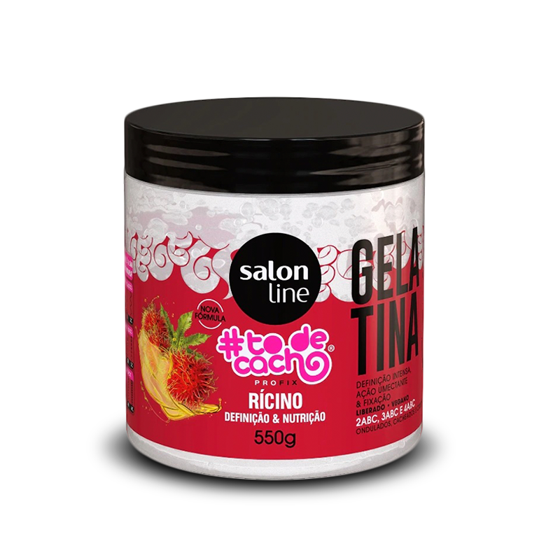 La Gelatina de Aceite de Ricino de la Línea Salon para cabellos ondulados, rizados y encrespados tiene en su fórmula aceite de ricino y colágeno vegetal que garantizan una definición intensa desde la raíz hasta las puntas, nutrición de las fibras capilares y fijación del rizo. Además, cuenta con la eficaz tecnología PROXIX, que garantiza 72 horas de formateo, fijación y duración de los rizos y rulos.