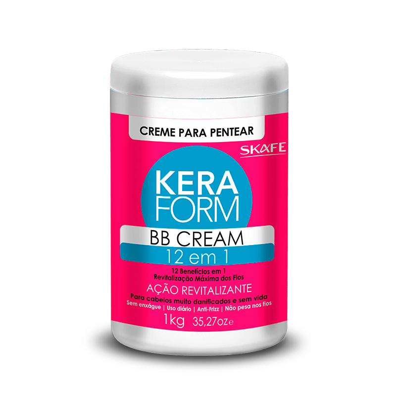 Tu cabello necesita revitalización día tras día para mantenerse hermoso y saludable. Con eso en mente, Skafe presenta Keraform BB Cream Combing Cream, el avance en el tratamiento para el cabello muy dañado y sin vida. Keraform Combing Cream revitaliza profundamente el cabello, dejándolo ultra sedoso, tembloroso y lleno de vida. Su fórmula penetra profundamente en la estructura capilar revitalizando por completo el cabello gracias a la acción BB Cream Keraform con 12 beneficios. Una película protectora envuelve la fibra capilar, devolviendo brillo y vitalidad al cabello.