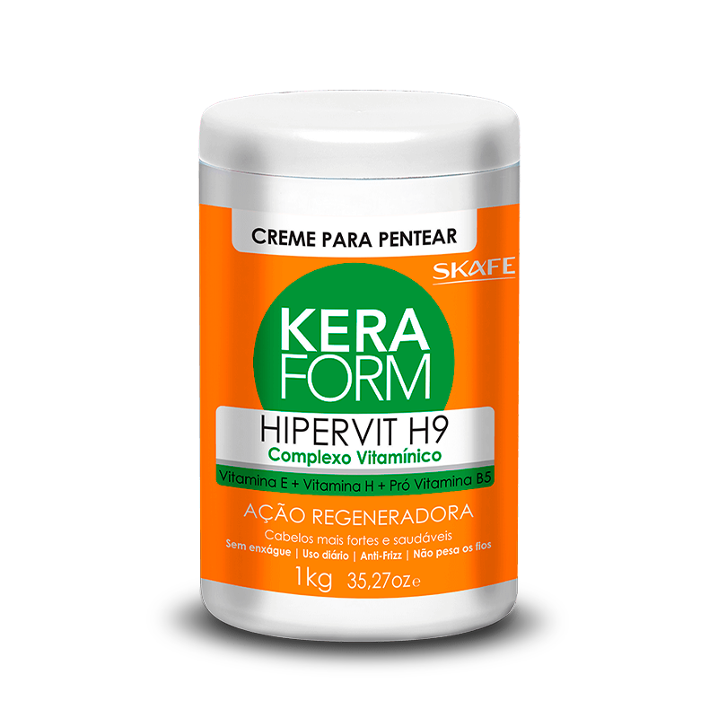 La Crema de Peinar Keraform HiperVit H9 regenera profundamente el cabello, dejándolo ultra sedoso y con equilibrio natural. Su fórmula penetra profundamente en la estructura capilar, revitalizando y nutriendo completamente el cabello gracias a la acción del Complejo Vitamínico (Vitamina E + Vitamina H + Vitamina Pro B5).