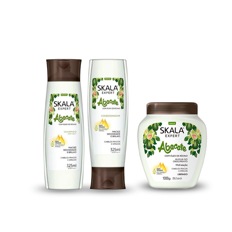 Skala Abacate Crema de Peinar ideal para el cabello débil y sin brillo. El aceite de ricino ayuda en el crecimiento del cabello, limpiando y eliminando las toxinas del cuero cabelludo. Nutritivo e hidratante aporta muchos beneficios al cabello. El aguacate ayuda en el tratamiento de la caída del cabello, fortaleciendo y aportando suavidad e hidratación.